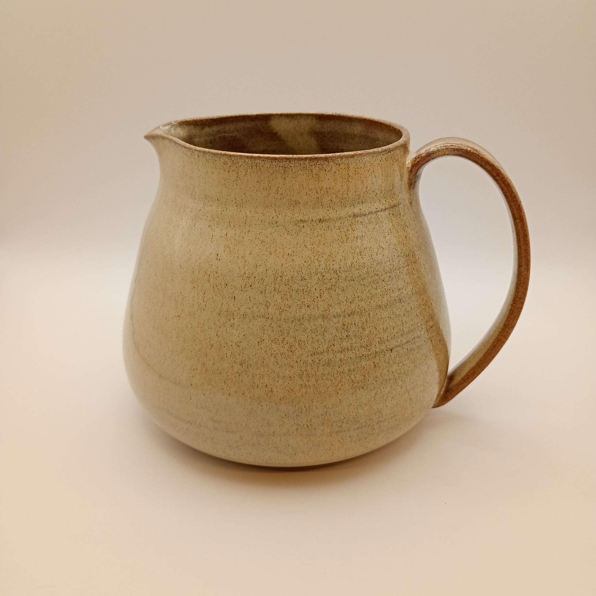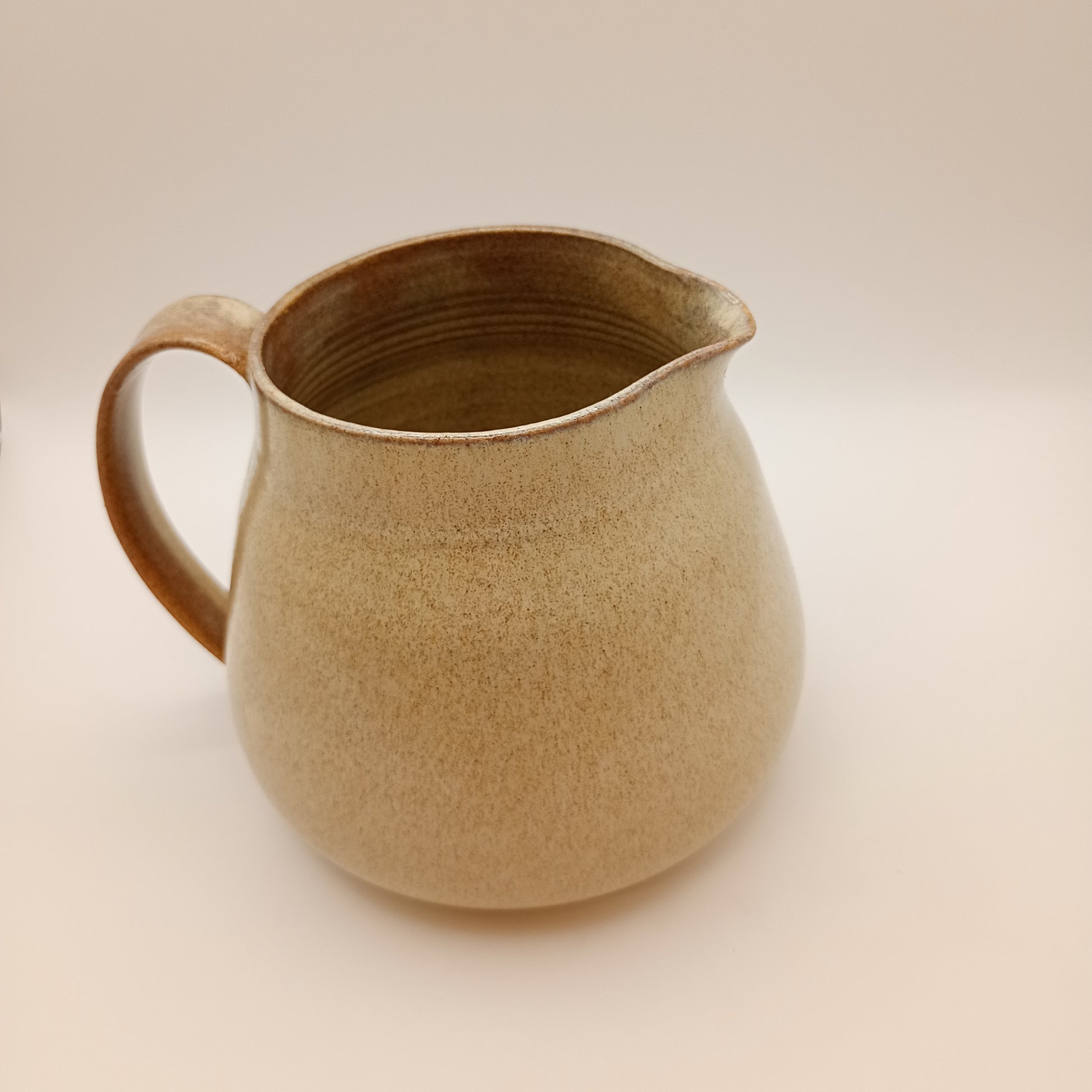 Kanden er drejet i hvidstentøjsler og glaseret i blank sandglødet nuancer. Den er varm, rolig og jordnær i sit udtryk
